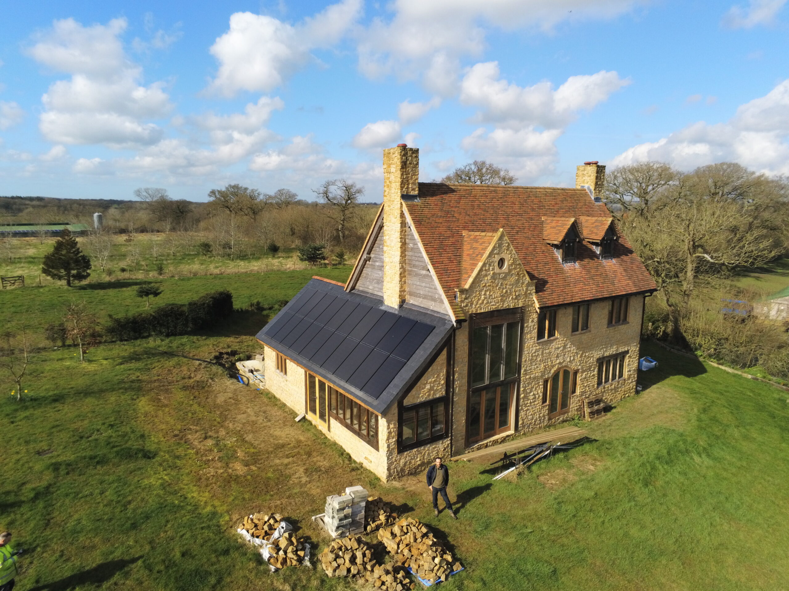 12kWp in-roof solar system blending into the farmhouse’s slate roofing